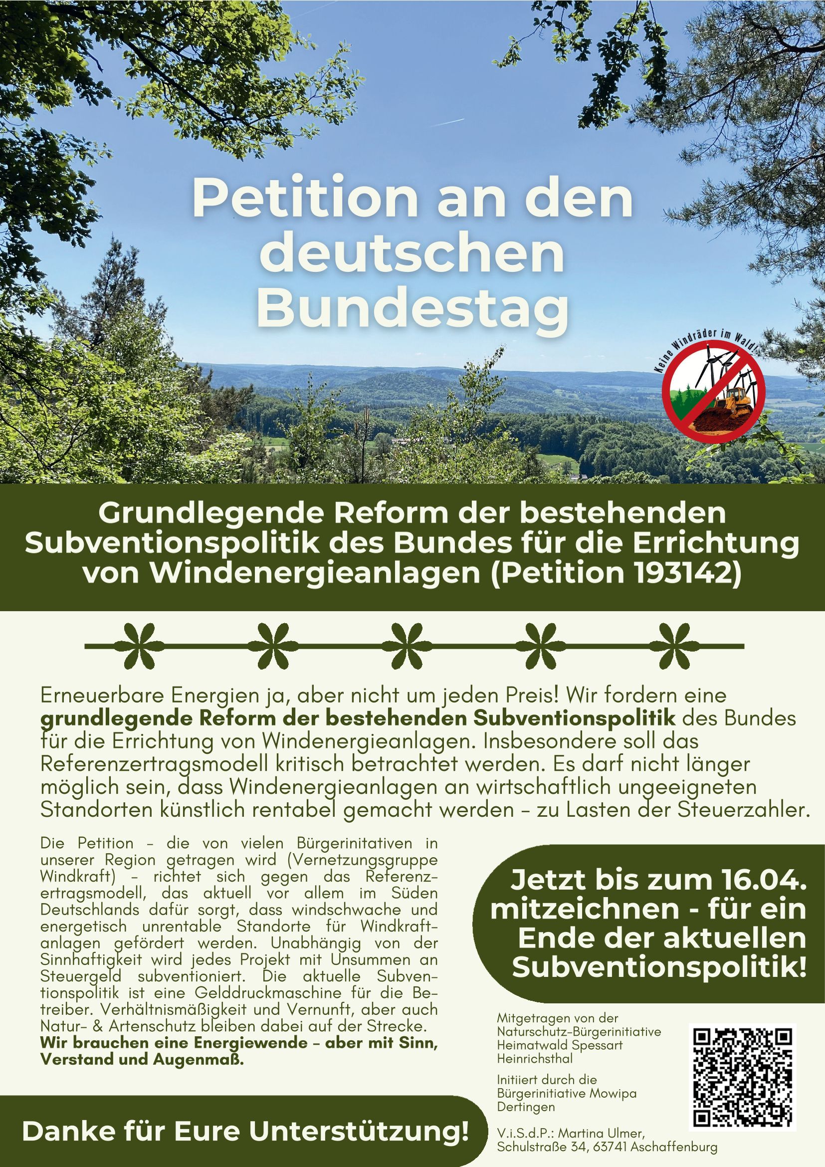 - Wende Dich an Gemeinderäte und Bürgermeister, damit sie Dich und die Natur des Spessarts vertreten und sich nicht von unrealistischen Geldversprechen locken lassen!